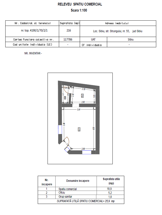 Societatea Urbana S.A. oferă spre închiriere prin licitaţie publică un spaţiu comercial situat pe Str. Strungului Nr. 55, Sibiu.